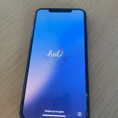 Det er ikke knust skjerm. På bildet er det bare skjermbeskyttelsen som har fått riper. Denne kan du bare ta av.