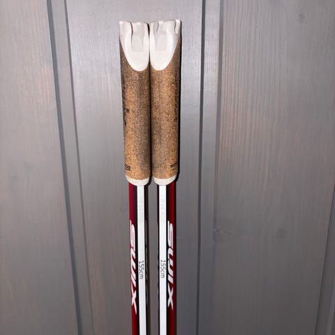 Swix Triac 2.5 langrennsstaver i lengde 152,5 cm. De leveres med ekstra korkhåndtak i god stand ettersom de som står på stavene er noe slitt . Stroppene er byttet og er nesten ubrukt. Det står trinse i str L på stavene , men det medfølger trinser i str S . Egner seg til klassisk eller skøyting avhengig av høyde og teknikk til løper.