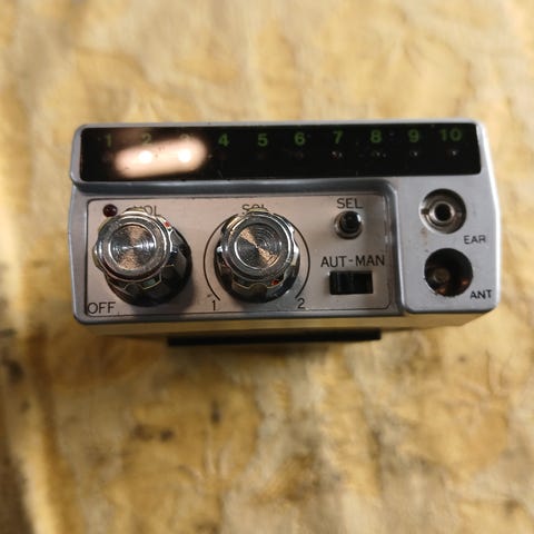 Selger en eldre AP Radiotelefon TRX 707 C, trolig fra 1970-tallet. Dette er en profesjonell, industriell bærbar radiotelefon produsert i Sverige.