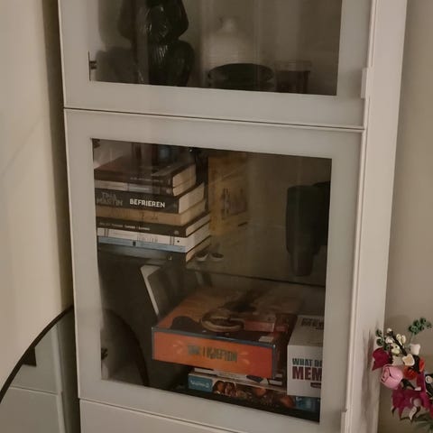 Pent og stilrent RUDSTA vitrineskap fra IKEA selges på grunn av flytting. Skapet har sort metallramme og glass på alle sider som gir et moderne uttrykk og god fremvisning av interiør, samleobjekter eller servise.
