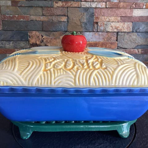 Keramikk fiskefat med lokk blå