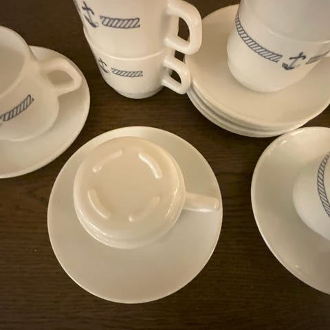 • jeg har 2 ekstra kopper fra et annet servise med anker,( se bilder)som du også kan kjøpe om ønskelig.