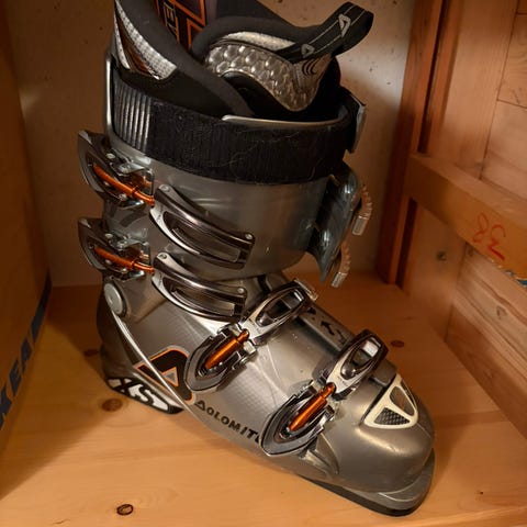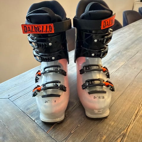 Dalbello V8 alpinstøvler i svart og hvit med gjennomsiktige brune partier. Støvlene har fire justerbare aluminiumsspenner med mikrojustering og powerstrap øverst for bedre tilpasning rundt leggen. Sålen har utskiftbare tå- og hældeler med gummipartier for bedre feste ved gange. Passer til vanlig alpinbinding. Egner seg til alpinkjøring i bakke for brukere som ønsker en støvel med flere justeringsmuligheter.