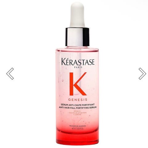 Kérastase Genesis hårserum. Serumet kommer i en flaske med pipetteapplikator for presis dosering og påføring i hodebunnen eller i håret etter behov.