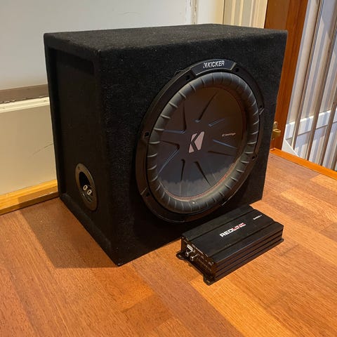 Alt funker som det skal og spiller veldig bra. Er noen bittesmå skruehull etter forrige eier har montert forsterker på kassen men ikke noe som merkes når subben står i bil.