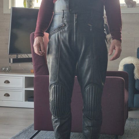 Halvarssons MC skinnjakke og skinnbukse i svart str 58.