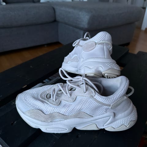 Selger et par stilrene og komfortable New Balance sneakers i en nydelig beige/offwhite farge. Skoene er lite brukt og fremstår i veldig god stand. Ingen skader – kun normal, minimal slitasje under sålene (se bilder).
