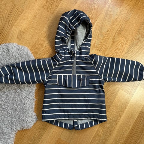 Reflex jakke for barn i størrelse 74. Jakken er blå med oransje detaljer og er laget i polyester. Den har hette, glidelås foran og refleksdetaljer på ermene. Unisex-modell som passer både gutter og jenter.