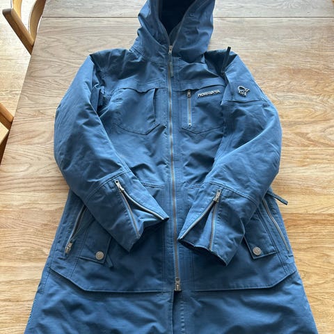 Norrøna ytterjakke for dame i størrelse L. Jakken er blå (dolphin)og laget i Gore-Tex-materiale, som er kjent for å være vann- og vindtett samtidig som det puster. Modellen har lengre passform med hette, frontglidelås og flere lommer med glidelås. Egnet som yttertøy i variert vær og til hverdagsbruk eller tur.