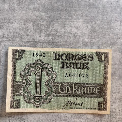 1 krone krigssedel 1942 - gr 1+