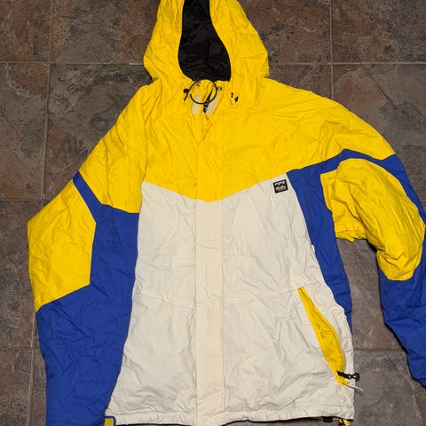 Så si ingen bruktmarked men har blitt reparert med tekstillim på delaminering ved glidlås. Dette er holdbart og tåler fint vask 30 grader(se 2 siste bilder)