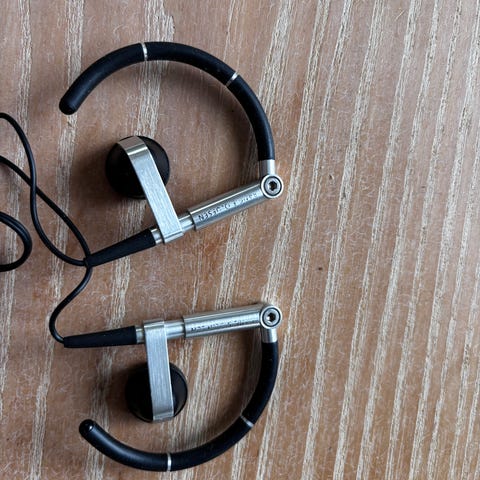 Bang & Olufsen Beoplay EX. Disse ble kåret til markedets beste ørepropper med den beste lyden. De holder fortsatt første plassen. Venstre ørepropp må man dytte litt på så den skal lade i etuiet og derfor selges den rimelig.