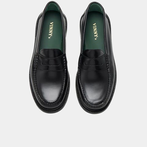 Zara mokkasiner i størrelse 38. Skoene er i svart, glatt materiale med blank finish og har en klassisk mokkasinutforming med markert såle og hæl. Passer til hverdagsbruk eller mer formelle anledninger der man ønsker et enkelt og stilrent uttrykk.