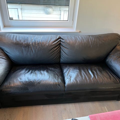 Selger en 3 seter skinn sofa, godt brukt men fortsatt mye bruk igjen i denne. Selges som den er.