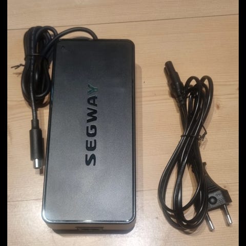 Segway strømforsyning lader med effekt på 71 W og utgangsspenning på 42 V. Enheten har fastmontert ladekabel med rund DC-plugg og løs nettkabel for tilkobling til stikkontakt. Egnet som lader eller reserve lader til kompatible Segway-produkter som bruker 42 V inngangsspenning. Spesifikasjoner og sikkerhetsinformasjon er trykket på baksiden av adapteren.