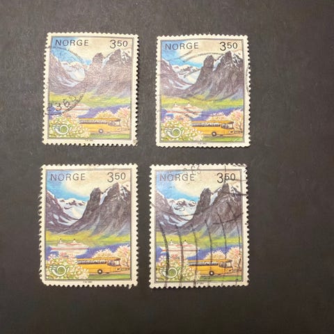 NK 929 - Norge frimerker 2,50 med fjellmotiv i flerfarget trykk. Motiv med fjellandskap og turgåere, samt pålydende verdi 2,50 øverst til venstre og «Norge» øverst til høyre. Frimerkene har taggete kanter og er stemplet. Egner seg til frimerkesamling eller som tillegg i en eksisterende samling av norske motivfrimerker.