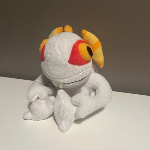 Blizzard Murloc kosedyr / bamse / plushie. Ca 20cm lang inkl ben, mindre når den sitter. Kun stått til pynt. Har et merke på det ene benet, kan sikkert vaskes av.