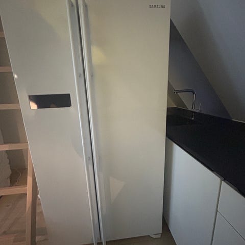 Side by side kjøle-/fryseskap med vann- og isbitdispenser. H 178 cm, bredde 90 cm og dybde 67 cm. Kan også brukes uten vanntilkobling (uten vanndispenser og isbiter) som kjøleskap/fryser. 3 stk nye vannfilter følger med.