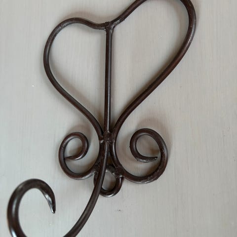 Tradisjonelt håndverk i smijern. Lengde 38 cm, høyde 5,5 cm og dybde 18 cm. Passer fint på hytte.