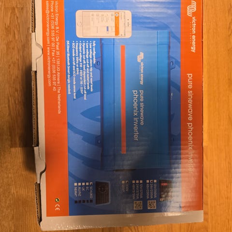Laderen er førsteklasses victron kvalitet. Inverteren ble imidlertid for liten for mitt bruk., Enheten er kun oppmontert og brukt i 3 dager.. Har ikke orginal embalasje, men den er omsorgsfullt pakket og klar til forsendelse. Vedrørende spesifikasjon se: