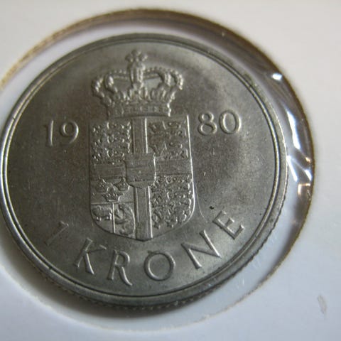 1 KR 1980 RETT FRA RULL. Har 40 stk igjen i rull. Pris er pr. Stk.