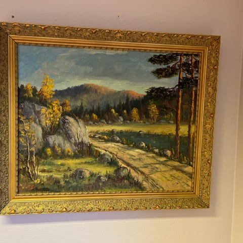 vurd. solgt. Olje på lerret. Rammemål: H: 55 cm. + B: 63 cm. Avskalling ornament oppe-venstre hjørne.