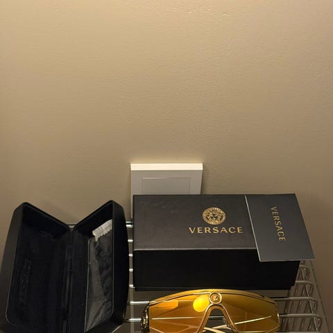 Selger disse kjempefine solbrillene fra versace siden jeg ikke bruker de 🤍 kjøpt på Zalando. brukt noen få ganger og har ingen bruksmerker. Boks følger med, og har kvittering. Nypris er 2325,-