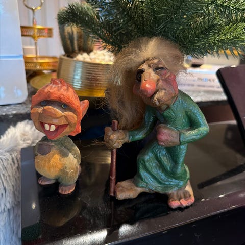 Dekorativ fantasidolk med stativ metall sølvfarget