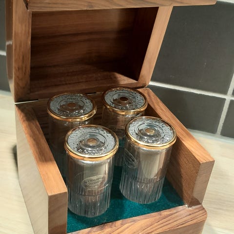 Vinkasser med rundt pleksiglass og ledlys.