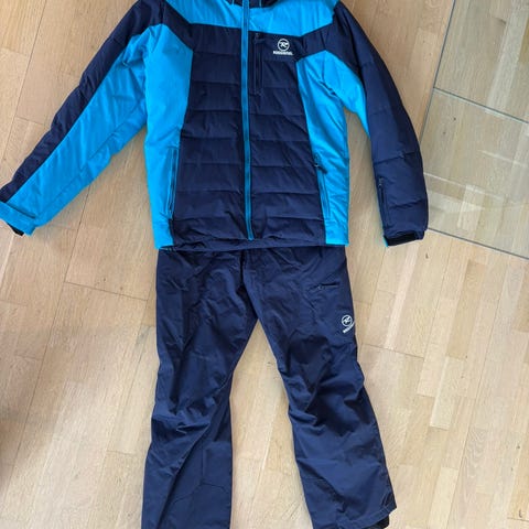 Kjus skijakke og skibukse setti størrelse str 164. Sett i blå og oransje farger.