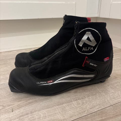 Alfa skisko i svart farge. Skiskoene har overtrekksgamasje med glidelås og snøring, samt såle med stålspiss for kompatibilitet med klassisk skibinding Rottefella NNN. Egnet til klassisk langrenn og turbruk på ski. Goretex, str. 41 ( passer til de sim vanligvis bruker 39-40 )