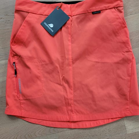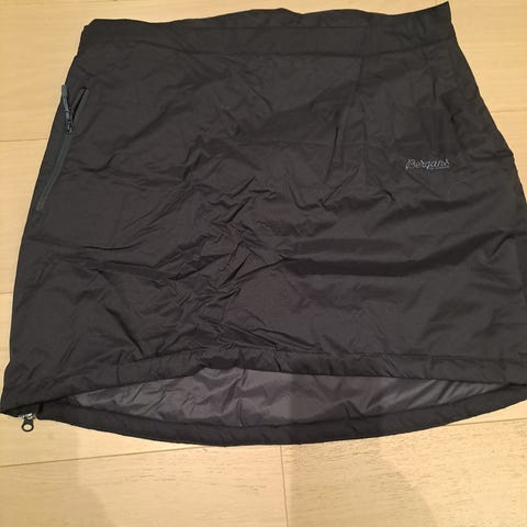 Bergans Hafjell isolert skjørt for dame i størrelse M. Skjørtet er rødt og har vattert/isolert materiale som gir ekstra varme. Modellen har glidelås i siden for enkel av- og påkledning, samt glidelåslomme i front. Egner seg godt som overtrekksskjørt på tur og andre utendørsaktiviteter i kjøligere vær.