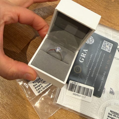 – Stein: Moissanite (D-farge)
