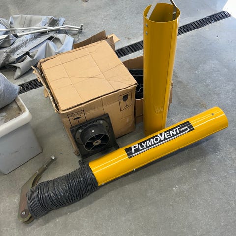 Geovent eksosavsug fra 2008 . Den har hengt i verksted men aldri vært i bruk . Fremstår som ny . Avtrekksvifte kan også medfølge mot tillegg i prisen