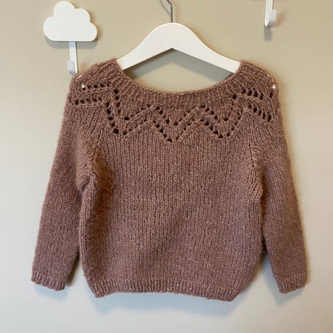 Chunky Dahlia Junior strikket i Sandnes Kos og Tynn Silk Mohair.