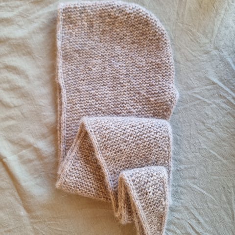 Helt ny Sophie hood - strikket i alpakkaull - myk og varm.