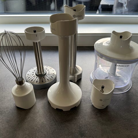 Bosch ErgoMixx stavmikser med tilbehør. Stavmikseren har en effekt på 600 W. Settet inkluderer stavmikserhåndtak med ledning, avtakbar stav i metall, visp og minihakker samt målebeger. Egnet til miksing, purering, pisking og hakking på kjøkkenet.