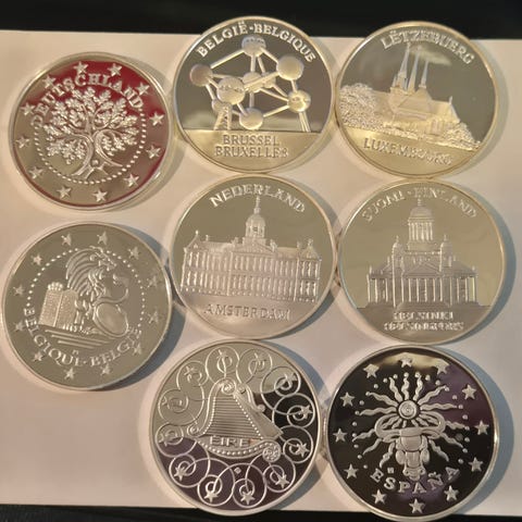 "Europe 1999", i kapsel, små merker. Sølvfarget medalje.