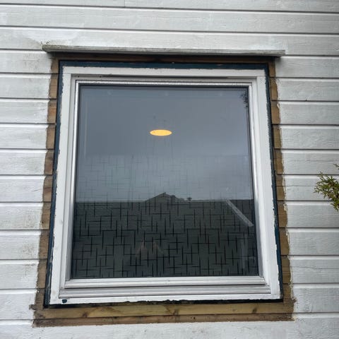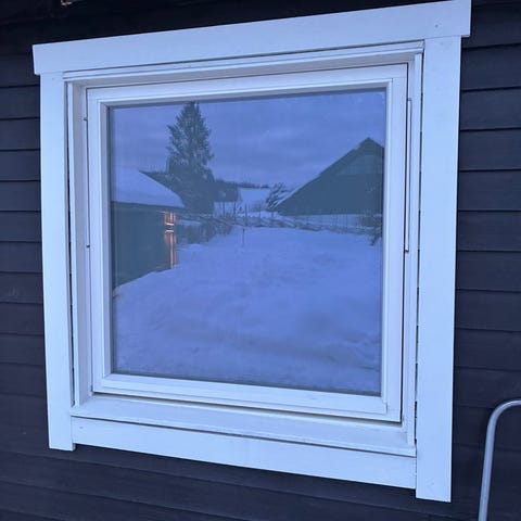 Åpnes utover topphengslet låst med med tohasper. Må hentes på Madla.