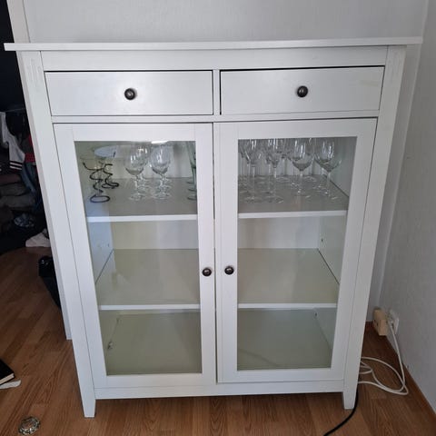 Pent brukt glassskap.