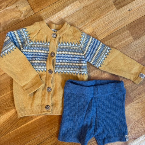 Den fineste ulla fra Memini, supersøt cardigan og romper størrelse 68 i ull🐻