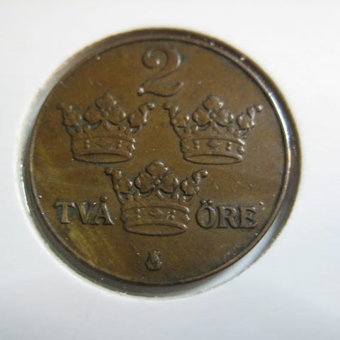 2 øre sverige 1902 kv 1+ , selges kr 30.-+porto