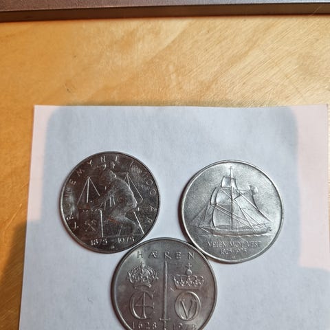 Norges Bank 5-kroner mynter2stk. veien mot vest og en stk hæren