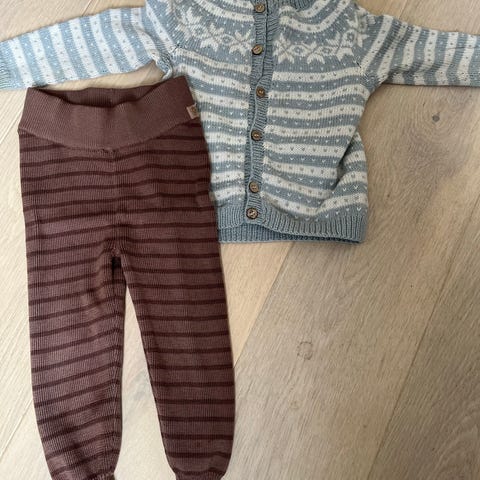 Nydelig ullsett fra Memini størrelse 74, matchende cardigan og romper💛