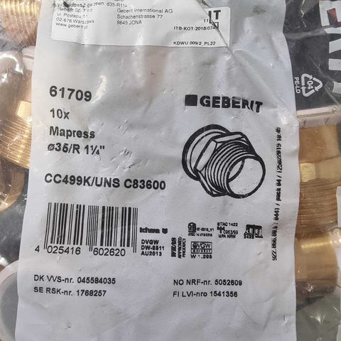 Geberit Mapress Bend 35 mm 90° med 2 muffer