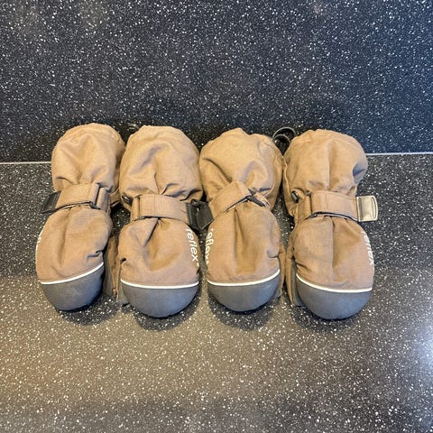 Behagelige og varme votter i fin rødfarge fra Reflex. Størrelse 2-4 år. Har både stropper og reim for å feste vottene, så de ikke sklir av. Den ene stroppen har revnet, men fungerer fortsatt like godt. Nypris 269kr.