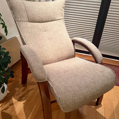Stolen ble renset i februar i år og er pent brukt. Noen bruksmerker er det, men den fungerer som den skal og er en veldig god lenestol.