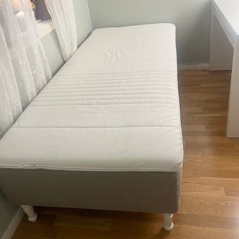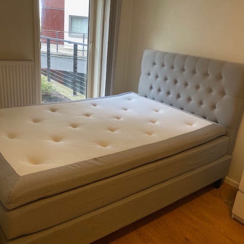 Kjøpt i 2021. Brukt, men i god stand. Overmadrassen kan trenge en vask, avtagbart.