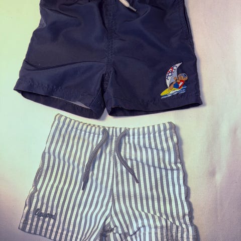 Marks & Spencer shorts for barn i størrelse 110. Unisex-modell i bomull med flerfarget mønster med palmer og surfebrett på lys bunn. Shortsen har strikk i livet og knytebånd for justering. Egnet til hverdagsbruk og sommeraktiviteter.