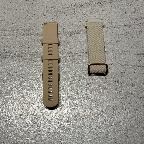 Garmin hvit silikon klokkerem. Helt ny, selges pga feilkjøp. Remmen er laget i silikon og har strukturert overflate med justerbare hull for tilpasning rundt håndleddet. Passer til kompatible Garmin-klokker med tilsvarende festeløsning. Metallspenne for lukking følger med, og remmen leveres med feste-pinner montert. NB: bredde 18 mm, sjekk din klokke om det passer.